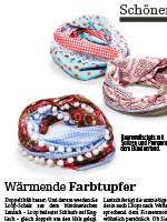 Schweizer Familie - 24.11.2011 Doppelt hält besser: Und darum werden die Loop-Schals aus dem bündnerischen Lantsch – Loop bedeutet Schlaufe auf Englisch – gleich doppelt um den Hals gelegt. Denn das hält warm! |